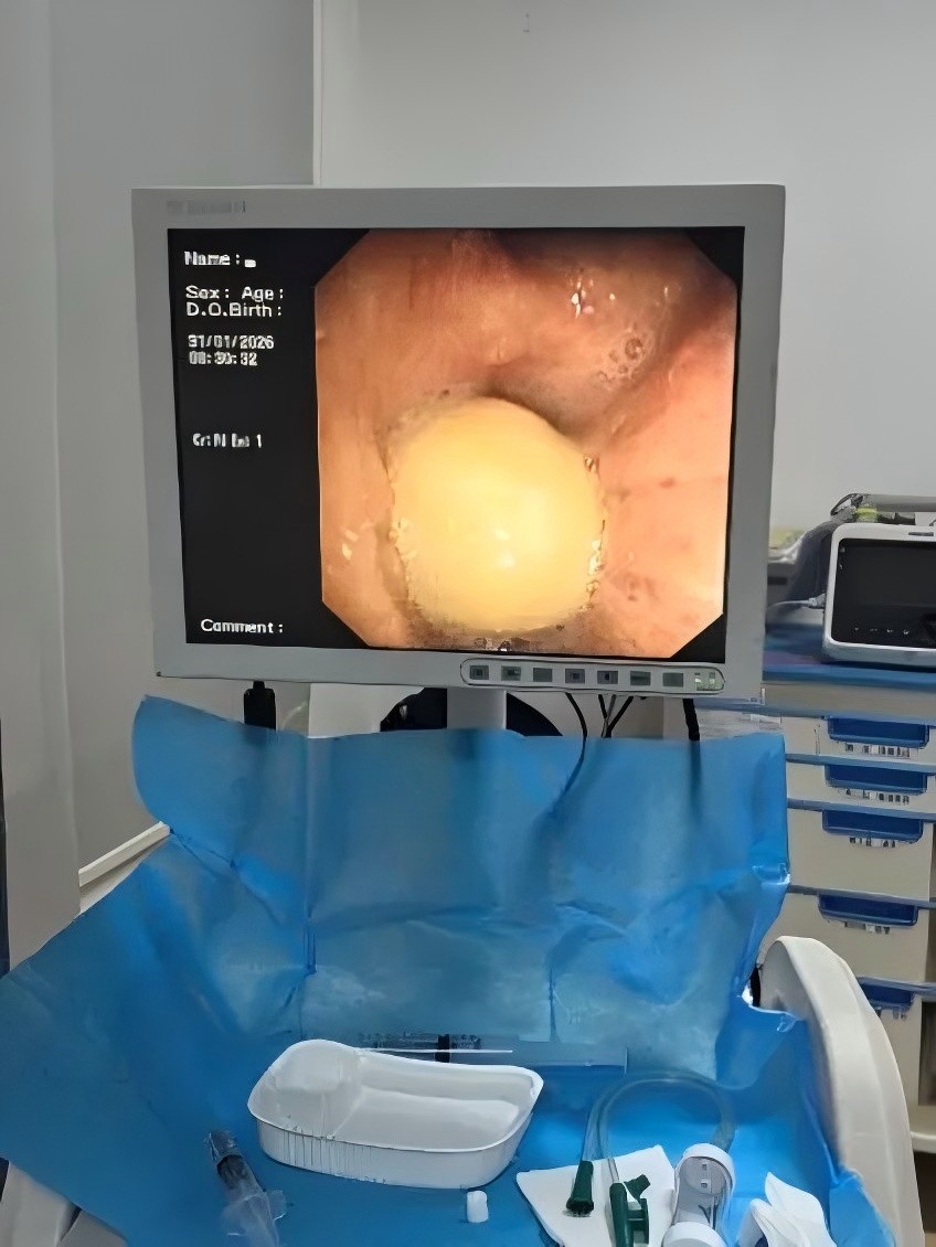 最近,楊大爺因為喘不過氣被送到羊馬院區(qū)內科綜合病區(qū),楊爺爺平時吃東西就經(jīng)常嗆到,這次入院一查胸部CT——好家伙,右肺支氣管里居然卡了顆1.1cm的異物!